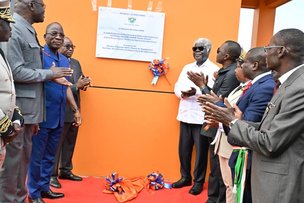 Diabo, le 05 octobre 2025 – C’est dans la liesse populaire et devant une population du Gbêkê reconnaissante que le Premier Ministre, Ministre des Sports et du Cadre de Vie, Robert Beugré Mambé, a procédé le 05 octobre 2025 à Diabo, à l’inauguration du Lycée professionnel multisectoriel de ladite ville. Un projet structurant pour le développement du capital humain en Côte d’Ivoire.