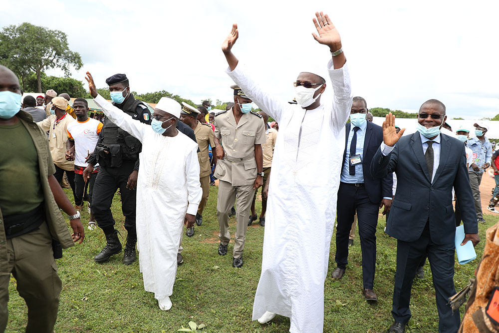 Gbémazo (Séguéla), le 24 juillet 2021- Les ministres Moussa Sanogo du Budget et du Portefeuille de l'Etat et Bouaké Fofana de l'Assainissement et de la Salubrité, ont co-présidé, le samedi 24 juillet 2021 à Gbémazo ( sous-préfecture de Worofla) une grande cérémonie d'hommage au Président de la République, Alassane Ouattara pour saluer ses actions de développement dans la localité.