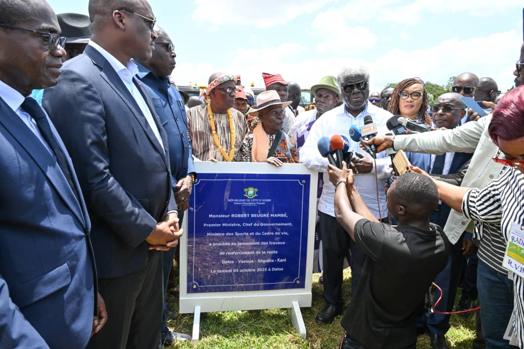 Daloa, le 04 octobre 2025 - Le Premier Ministre, Ministre des Sports et du Cadre de Vie, Robert Beugré Mambé, a procédé le 04 octobre 2025 à Daloa, au lancement des travaux de la route reliant les villes de Daloa, Vavoua, Séguéla et Kani, en vue d’améliorer les conditions de vie et de mobilité de milliers de personnes, de même que leur sécurité.